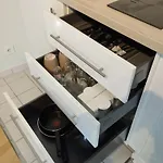 Studio à Saint-Nazaireアパ-トメントアパ-トメントには,台所,化粧室,ソファ とコ-ヒ-/紅茶メ-カ-付きの客室があります. サン=ナゼ-ル橋まで車で10分,Terrasse Panoramique de l'Ecluse Fortifiéeまで2.3キロです.